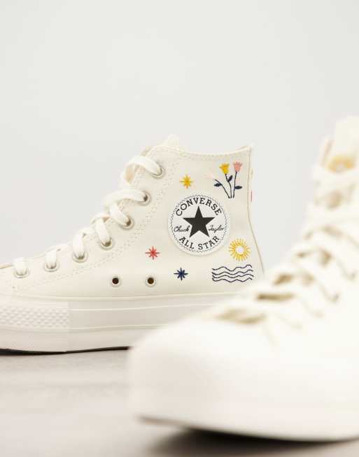Converse Chuck Taylor All Star Lift Sneakers bianco sporco con ricami Very well made.
