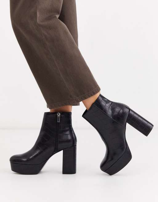 ASOS DESIGN Era high heeled platforms boots in black croc ASOS Very well made.
