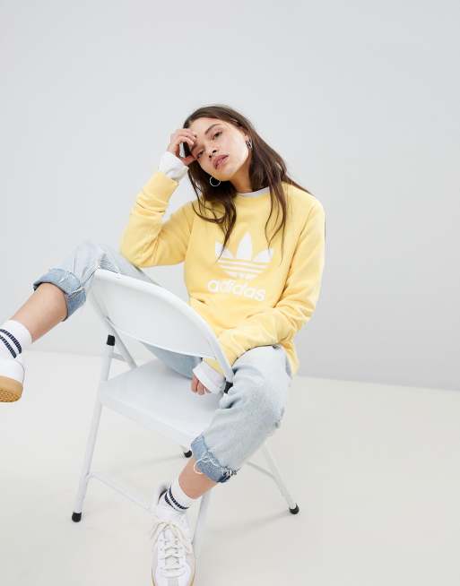 adidas Originals Trefoil Oversized Sweatshirt In Yellow Very well made.