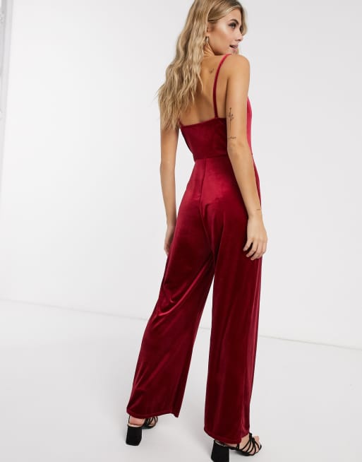 Miss Selfridge velvet jumpsuit with cowl neck in burgundy Very well made.