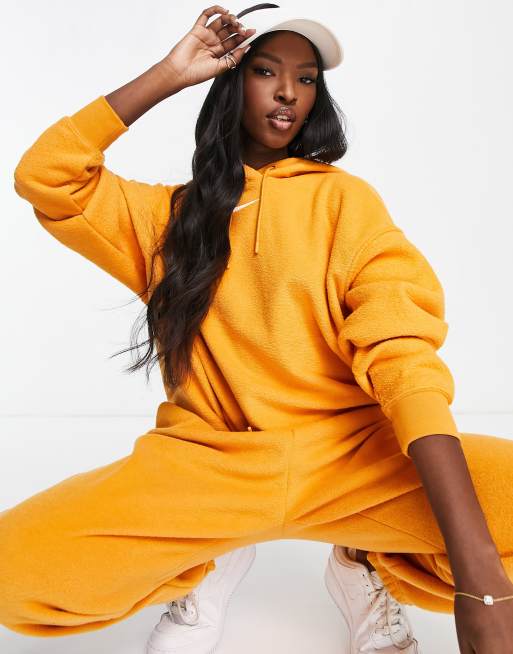 Nike mini swoosh longline pullover hoodie in yellow Very well made.