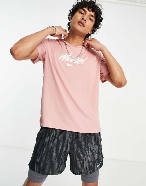Nike Running Wild Run Rise 365 t shirt in pink and gold Very well made.