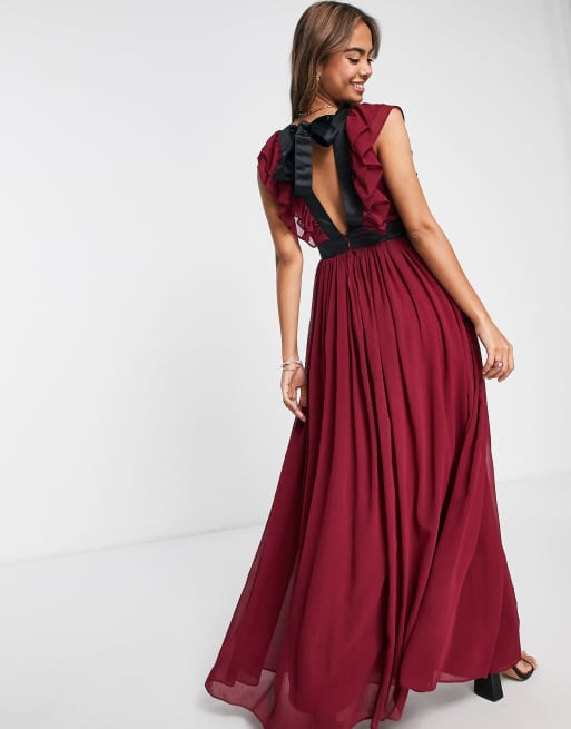 ASOS DESIGN wrap front tie back maxi dress in plum Very well made.