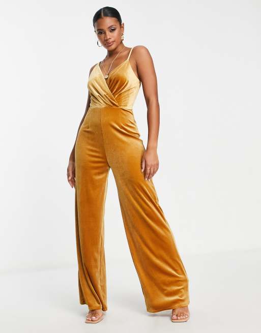 Little Mistress Samt Jumpsuit in Zimtbraun mit gewickelter Very well made.