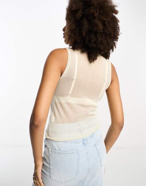 ASOS DESIGN sheer sleeveless top with high neck in cream ASOS Very well made.