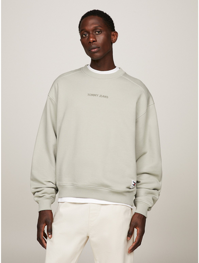 Tommy Jeans relaxed grunge arch logo crewneck sweatshirt in light blue Very well made.
