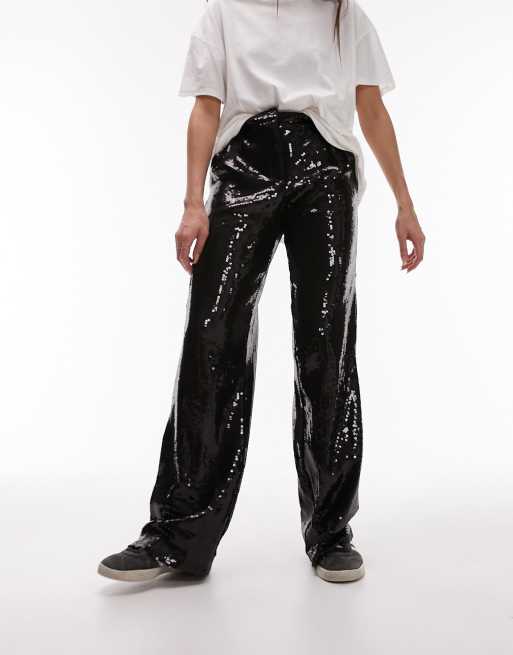 Topshop low slung sequin wide leg pants in black Very well made.