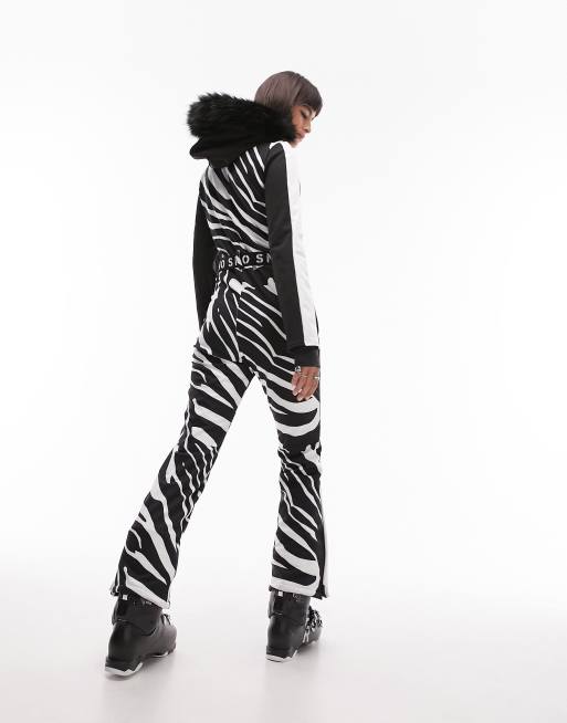 Topshop Sno ski suit with skinny flare in zebra print Very well made.