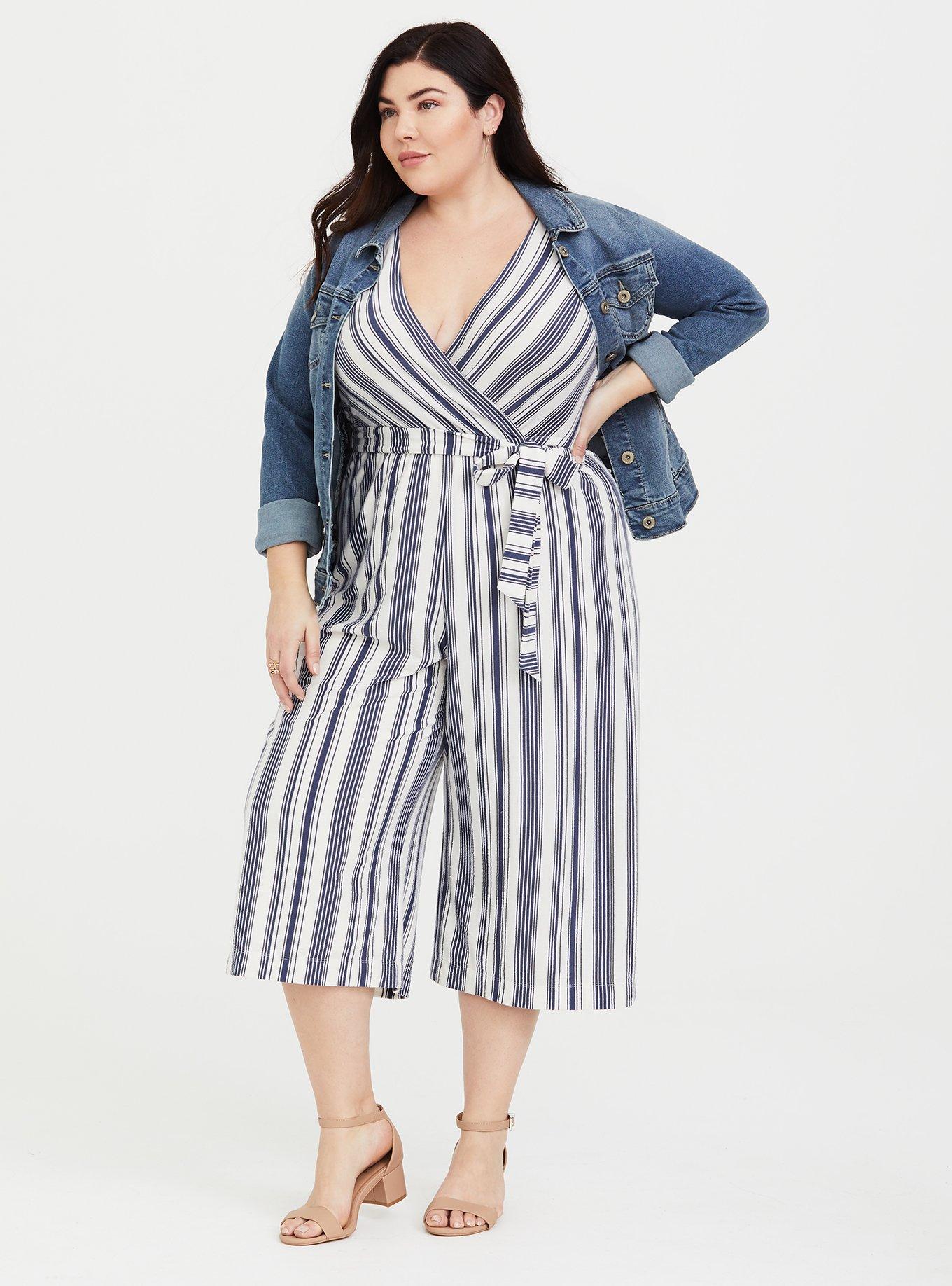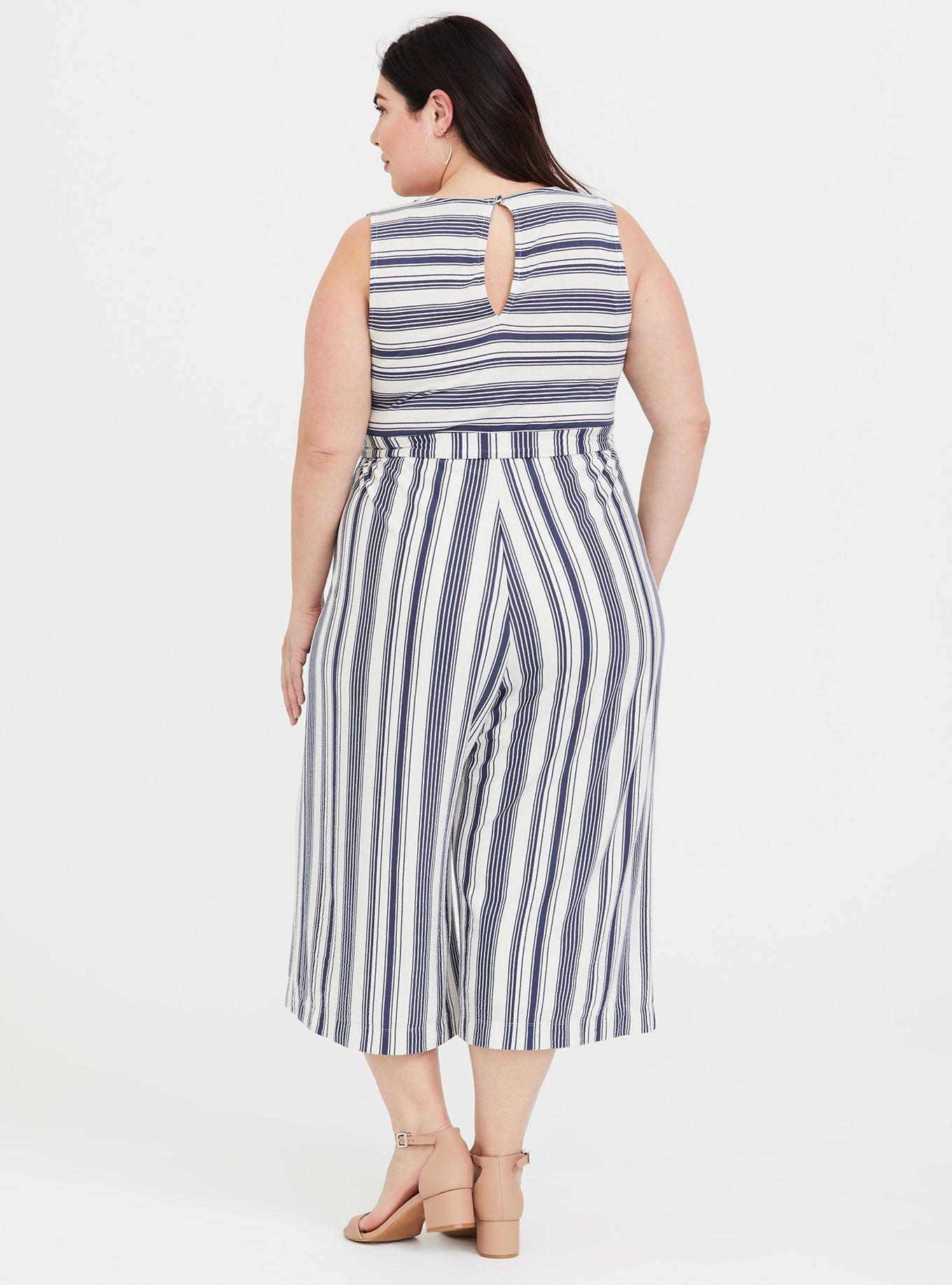 Plus Size Black and White Stripe Wide Leg Challis Jumpsuit Torrid Very well made.