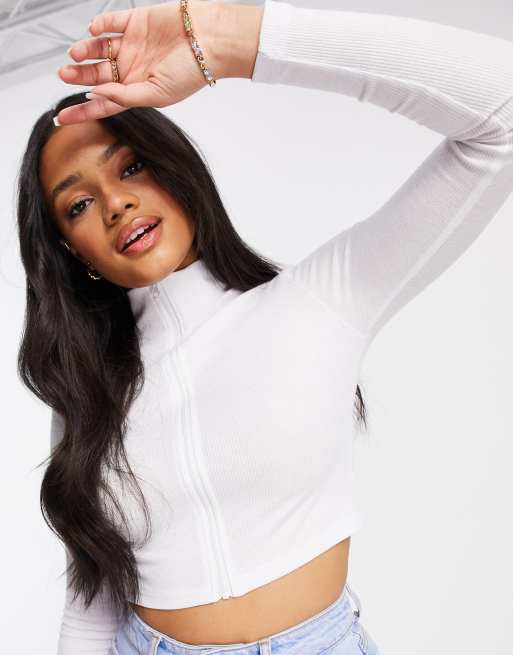 Bershka super crop zip up top in white ASOS Very well made.