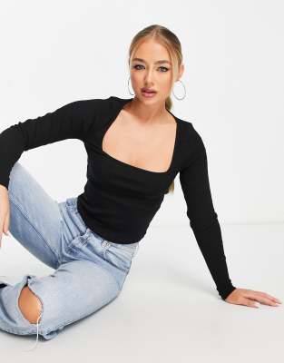 ASOS DESIGN square neck long sleeve top in black ASOS Very well made.