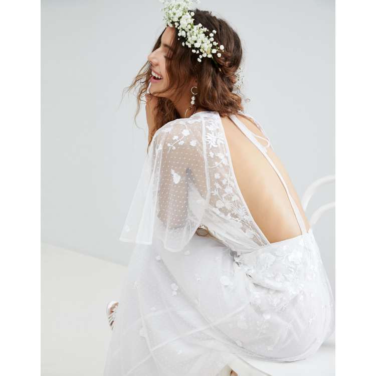 ASOS DESIGN Embroidered Flutter Sleeve Maxi Wedding Dress WHITE Very well made.
