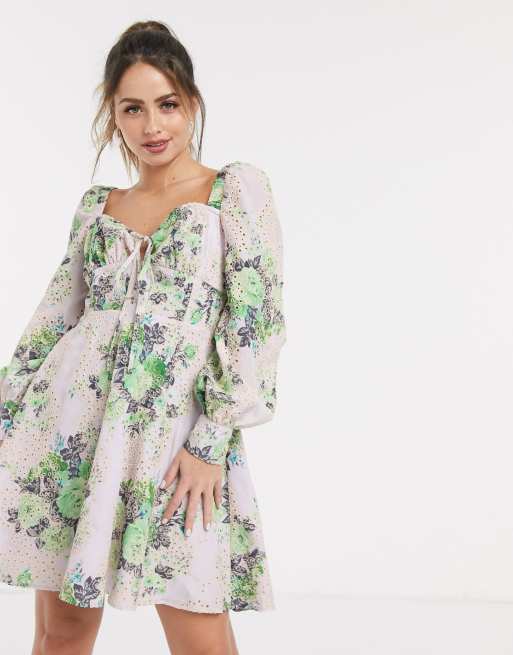 ASOS DESIGN botanical floral lace insert ruffle mini skater dress Very well made.