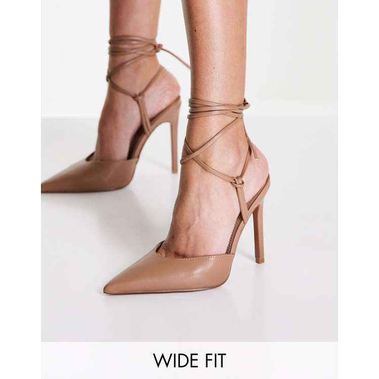 ASOS DESIGN Wide Fit Prize tie leg high heeled shoes in beige ASOS Very well made.