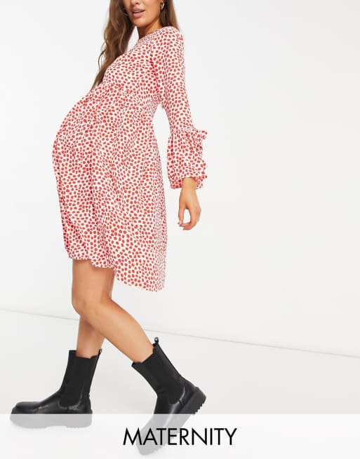 Queen Bee Maternity frill sleeve mini dress in red spotted print Very well made.