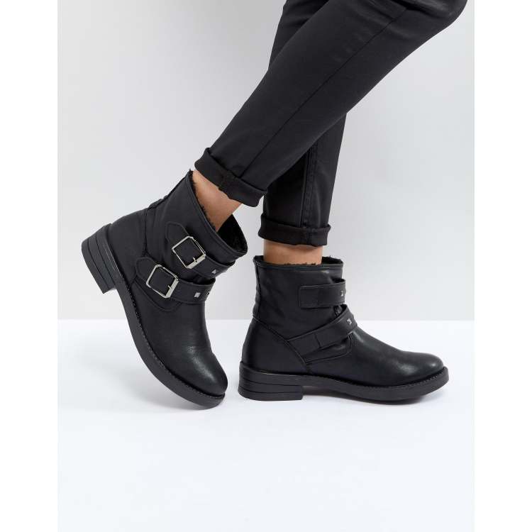 Ladies Buckle Ankle Boots Womens Biker Zip New Winter Casual Mid Very well made.