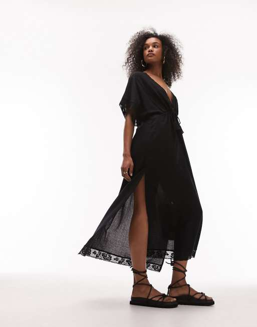 Topshop embroidered lace trim maxi beach cover up in black ASOS Very well made.