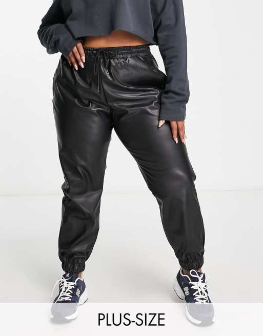 ASOS DESIGN Curve leather look jogger in black Very well made.